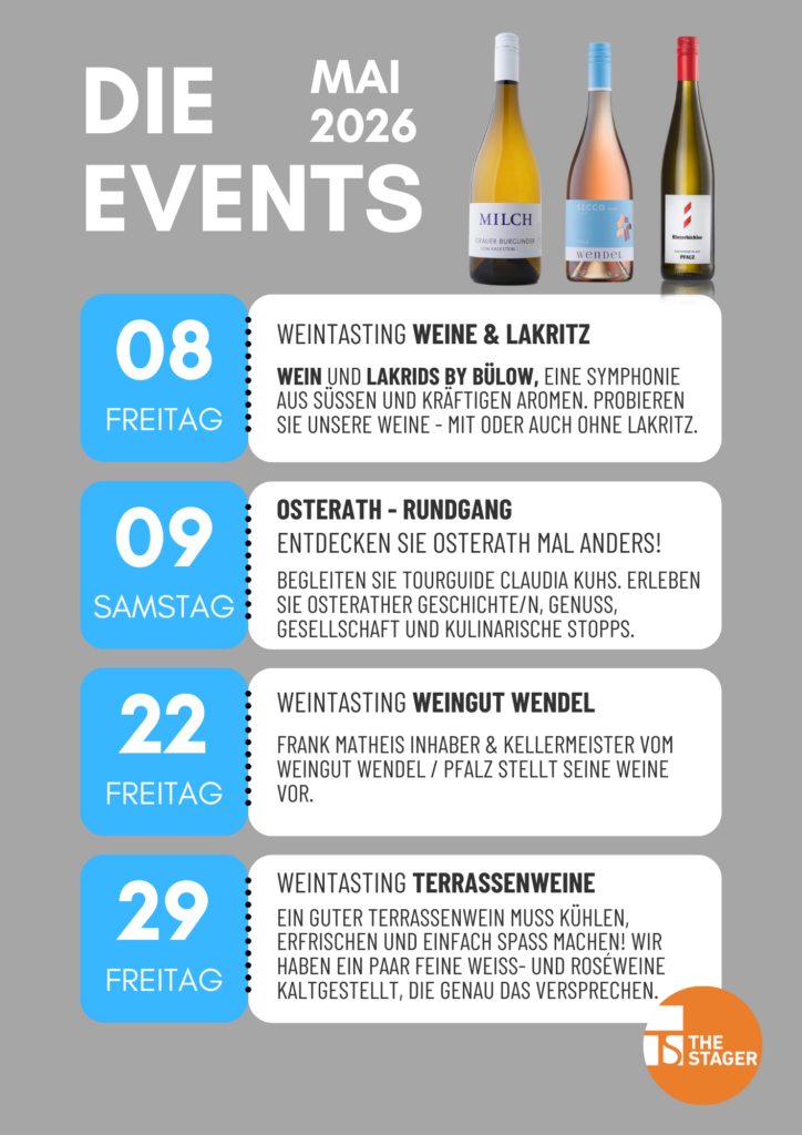 KOSTENBEITRAG € 28/PERSON. ANMELDUNG PER EMAIL MIT NAMEN, PERSONENZAHL UND TERMIN ODER PERSÖNLICH IM SHOP | info@thestager.de